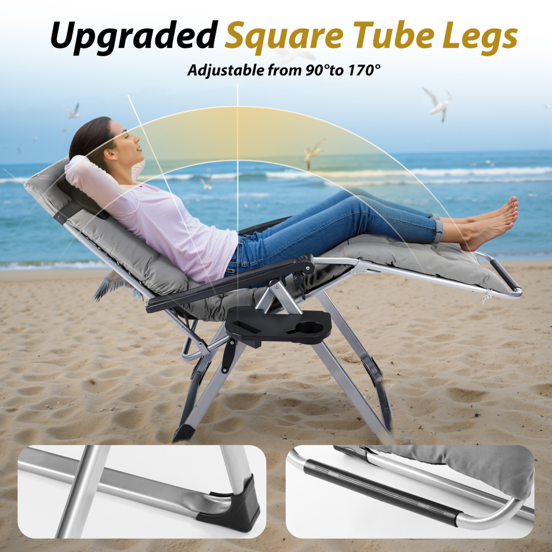 Zero Gravity Chair, Reclining Camping Lounge Chair For Indoor, Reclining Patio Chairs With Cup Holder Trays And Removable Cushion